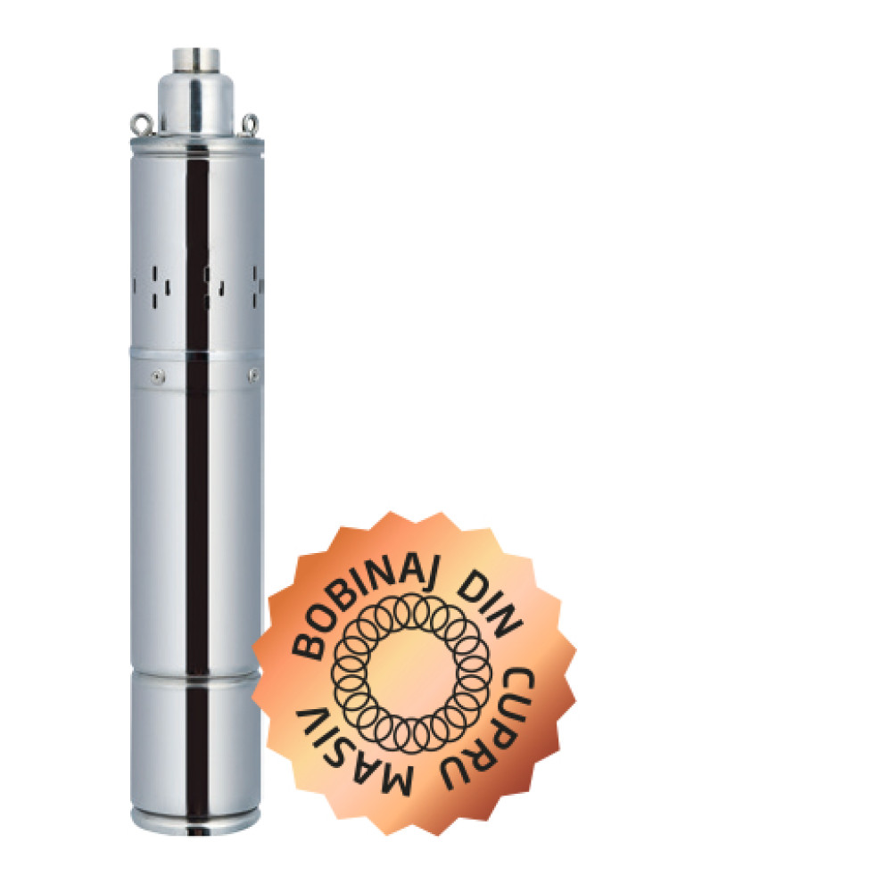 Motorul pompei este de 370 w cu bobinaj 100% din cupru, iar constructia pompei este de tip surub