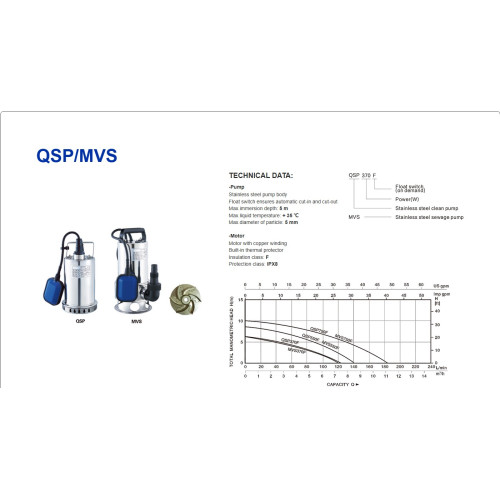 POMPA SUBMERSIBILA APA MURDARA DIN INOX KEPEIDA ITALIA MVS-750W, 11000L/H