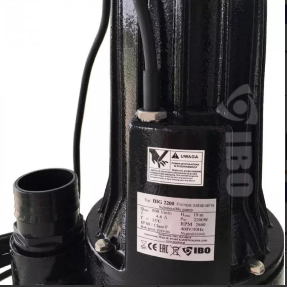 Pompa Industriala pentru fose, ferme animale, Apa reziduale, IBO BIG 2200, 2.2 kW, 800 l/min, H Refulare 19 m, 380V